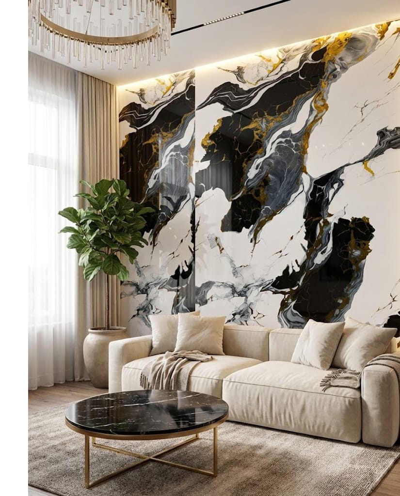 Modelul de Marmură grafit auriu este extrem de versatil în spațiile care necesită o notă de exclusivitate. Poate fi utilizat pentru a placa un perete întreg în living, oferind un fundal dramatic pentru mobilierul de design. În bucătărie, funcționează excelent ca backsplash, contrastând elegant cu finisajele din oțel inoxidabil. De asemenea, în spațiile comerciale de lux, cum ar fi lobby-urile hotelurilor sau birourile executive, acest finisaj comunică profesionalism, putere și un simț estetic dezvoltat.