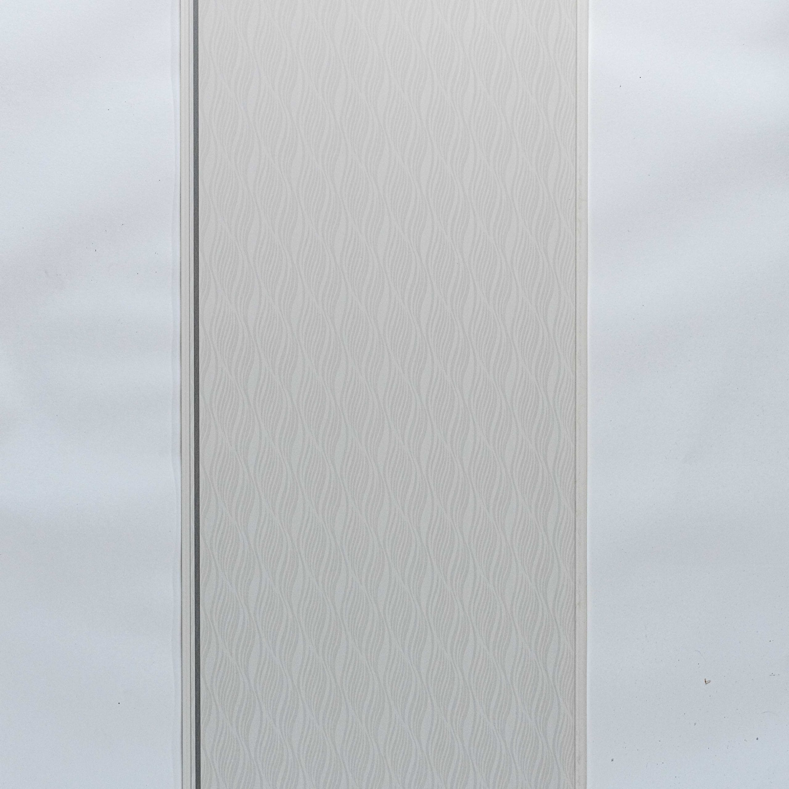 Redefinește estetica locuinței tale cu placa PVC decorativă pentru tavan model Wave Silver. Această placă combină puritatea albului cu un model texturat în formă de valuri fine și o dungă subțire cu reflexii metalice, creând un efect vizual dinamic și sofisticat pe întreg plafonul.
