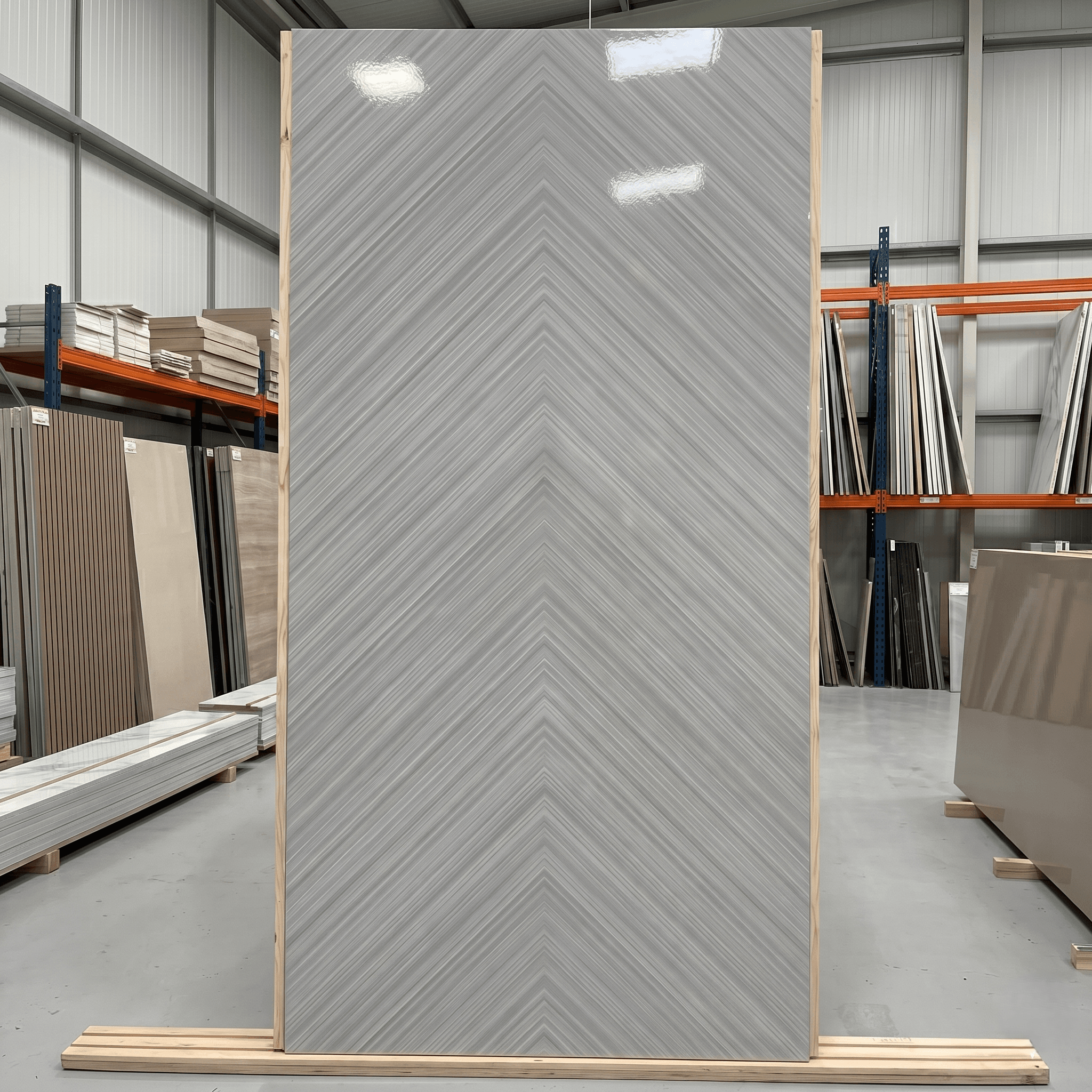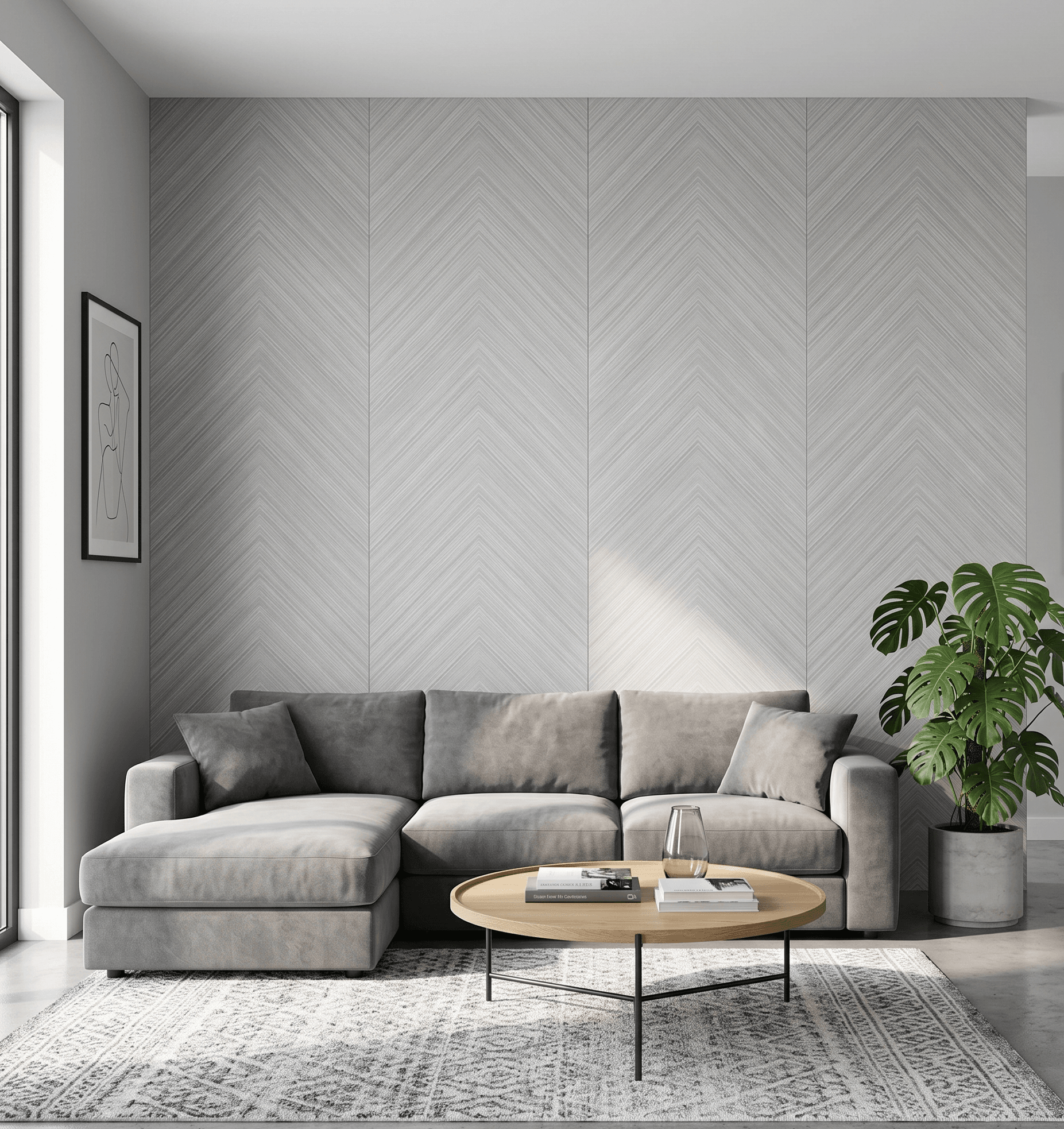 Modelul Urban Grey Chevron reprezintă fuziunea perfectă între rigoarea geometrică și estetica industrială modernă. Această placă portelanată se distinge prin modelul său iconic în spic, redat într-o paletă rafinată de gri argintiu. Liniile fine, paralele, care compun fiecare secțiune, creează o textură vizuală bogată ce amintește de metalul periat sau de țesăturile tehnice de lux, oferind profunzime și caracter oricărei suprafețe placate.