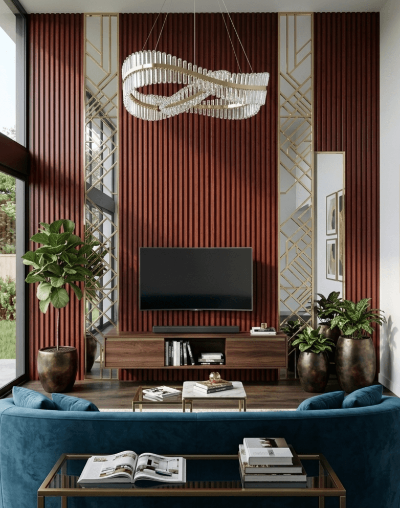 Datorită geometriei sale cu caneluri adânci, acest riflaj creează un joc fascinant de lumini și umbre, oferind adâncime peretelui. Culoarea vișinie/cireș adaugă o notă de lux clasic într-un format modern, fiind perfectă pentru a sparge monotonia pereților albi sau gri.